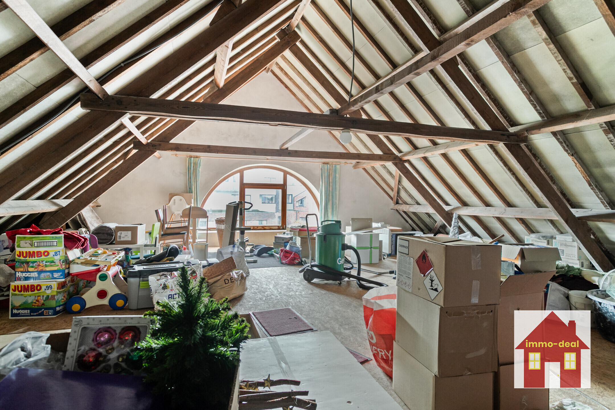 Tweede verdiep (te bereiken via vaste trap): – imposante ruimte die verschillende mogelijkheden biedt voor bijkomende kamer(s) en/of hobbyruimte