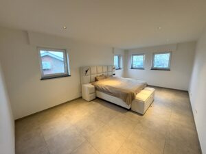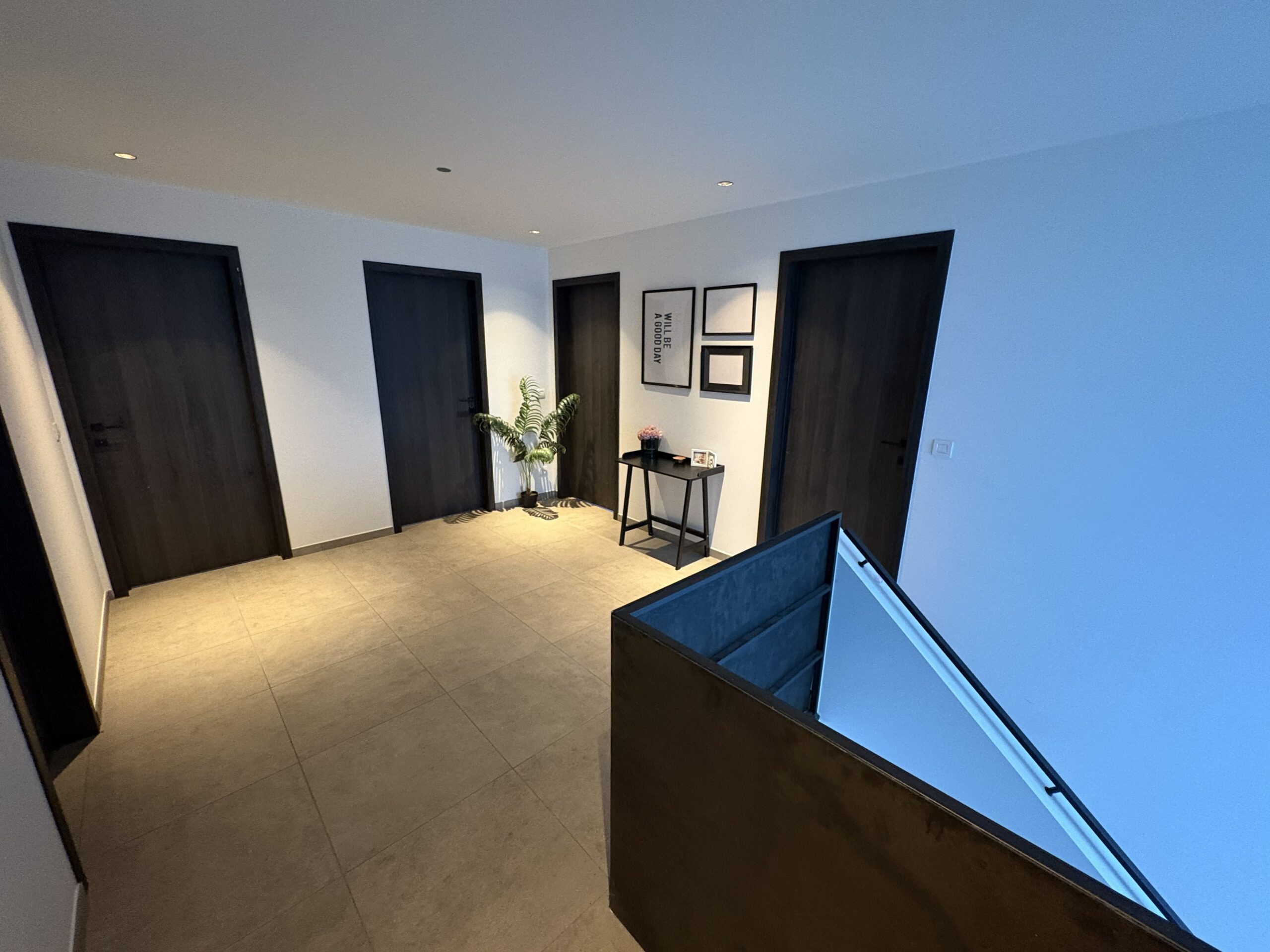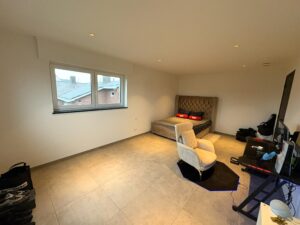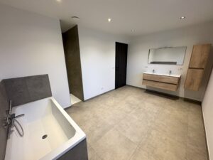 EERSTE VERDIEP – nachthal – vier ruime slaapkamers – ruime badkamer met badkamermeubel + ligbad + douche – apart toilet – extra kamer (met technische installatie) plus alsook ruime opbergruimte