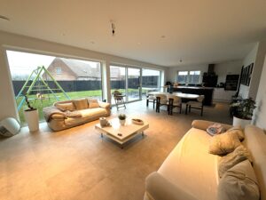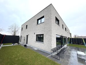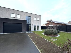 INDELING: GELIJKVLOERS – ruime inkomhal + apart toilet + berging – ruime, lichtrijke leefruimte met open, ingerichte keuken + keukeneiland met frontaal zicht op de tuin – ruime badkamer (+ voorziening voor wasmachine) – gelijkvloerse slaapkamer (kan ook gebruikt worden als bureau en/of hobbykamer) – ruime garage voorzien van sectionale poort (plaats voor auto, fietsen, …)